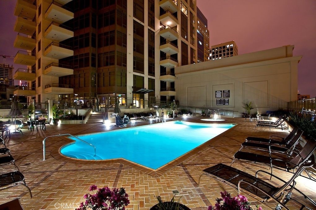 Stylish 2 story town home located on the North side of Electra over looking the historic Santa Fe Train Station and the city skyline. Reversed floor plan with two bedrooms, one bathroom on main level, kitchen and living area on second floor and huge private roof top deck on third floor great for entertaining. Hardwood floors throughout, stainless appliances in kitchen including gas cooktop. Enter the home off the grassy garden area of the complex. The BBQ and outdoor fireplace are so close they feel like your own. Resort style pool, gym and luxury living. Unit comes with large separate storage room on P1 level as well as locked bike storage rooms for complex.