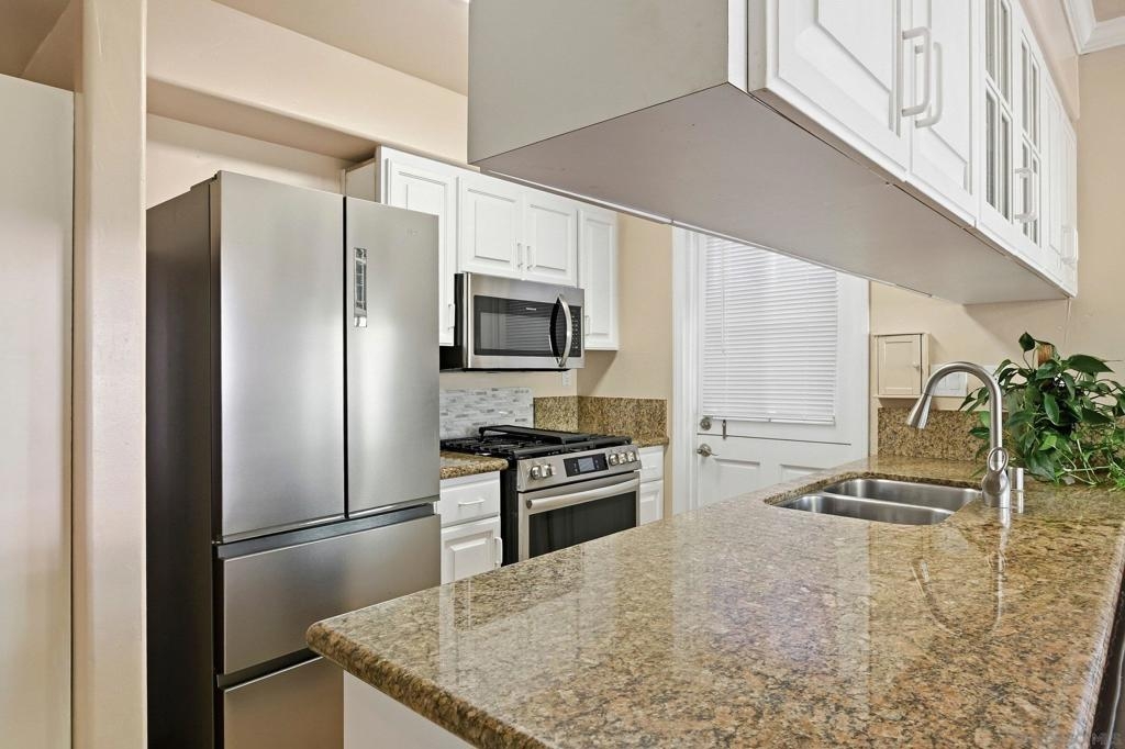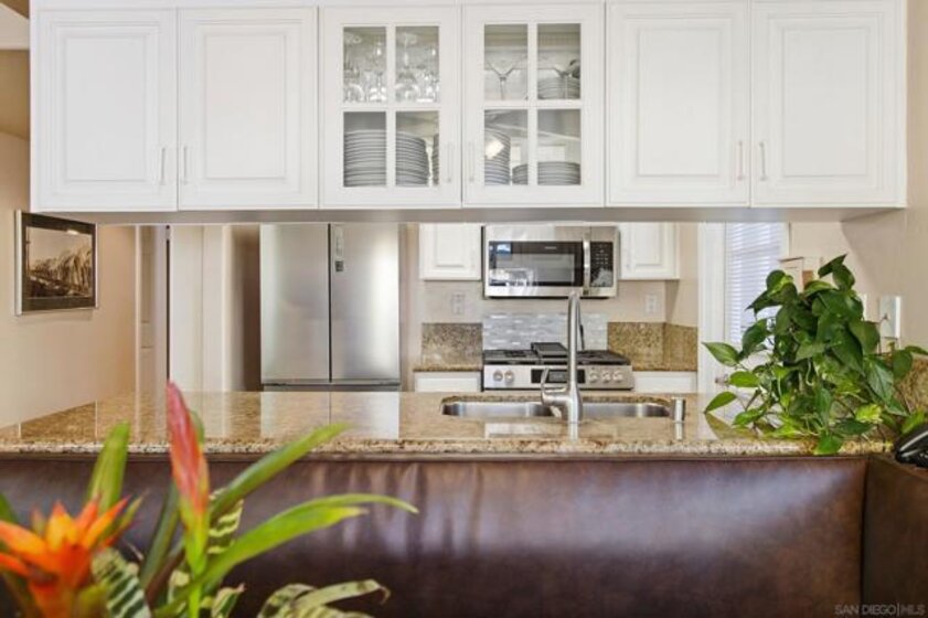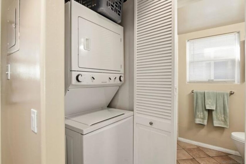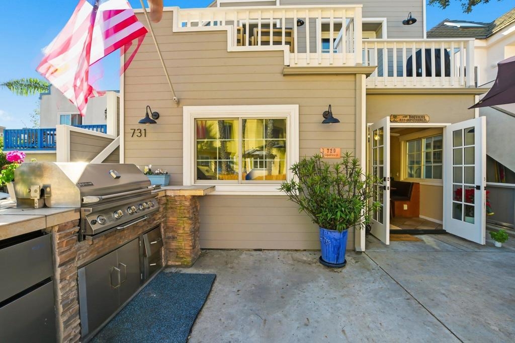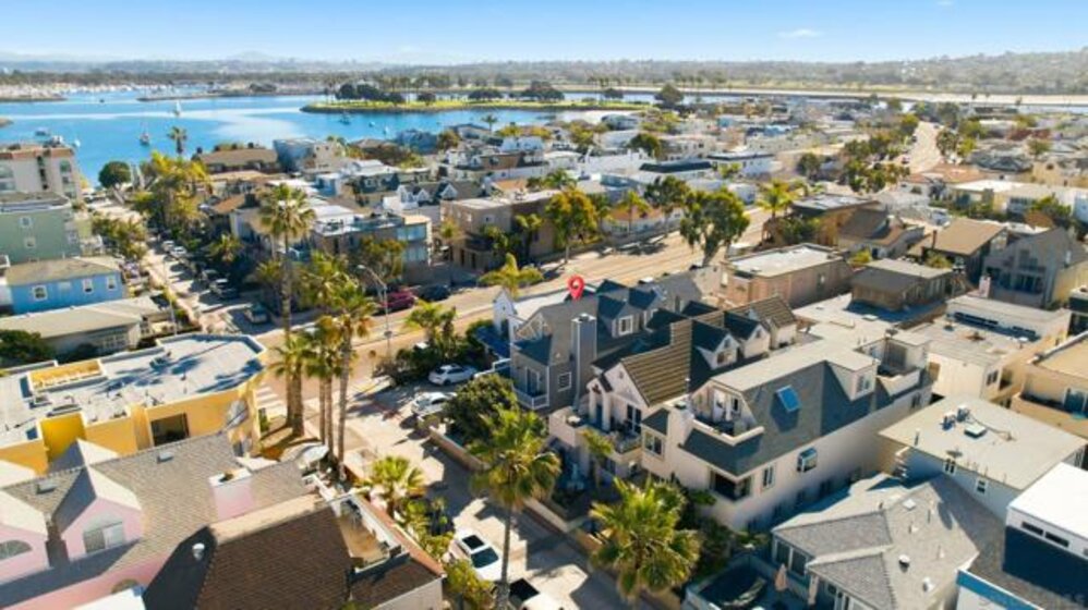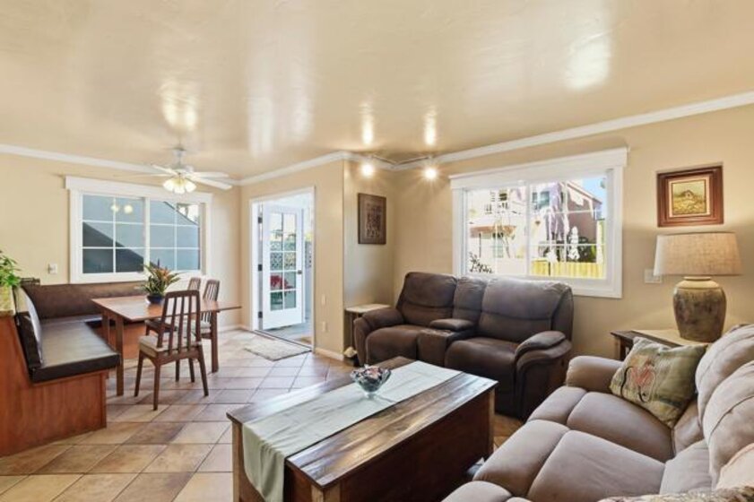 Welcome to your new beach home or ideal vacation retreat in the heart of South Mission Beach. This inviting coastal residence welcomes you through a spacious private front courtyard offering the perfect setting for outdoor dining, entertaining, or simply enjoying the vibrant people-watching. Inside, the home opens to the living/family, and dining area with tile flooring throughout.  French doors connect the dining area to the courtyard, enhancing the indoor-outdoor flow. The kitchen features granite countertops, a breakfast bar, newer appliances, a five-burner gas stove with backsplash, while the dining area includes custom built-in seating along the breakfast bar with generous storage beneath, adding charm and functionality. This two-bed, two full bath layout includes a primary suite with its own bathroom, featuring custom-built overhead storage above the bedroom closet, designed to maximize space. Both bedrooms include mirrored closet doors and ceiling fans. Additional highlights include crown molding in the living room and bedrooms, six-panel interior doors, a hallway laundry closet w/stackable washer and dryer, Anderson dual-pane windows w/lifetime transferable warranty, recent interior and exterior paint and a new roof in 8/22. This home offers two off-street tandem parking spaces and exterior storage near the covered parking area. Located just steps to the Pacific Ocean, steps to the bay, a short walk to Belmont Park, restaurants, and favorites like The Beachcomber and Pennant, this home delivers a true South Mission Beach lifestyle with year-round coastal enjoyment.