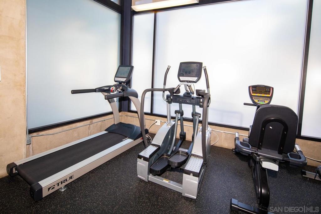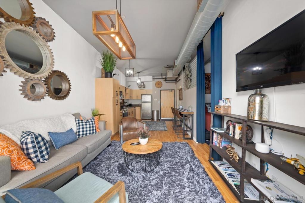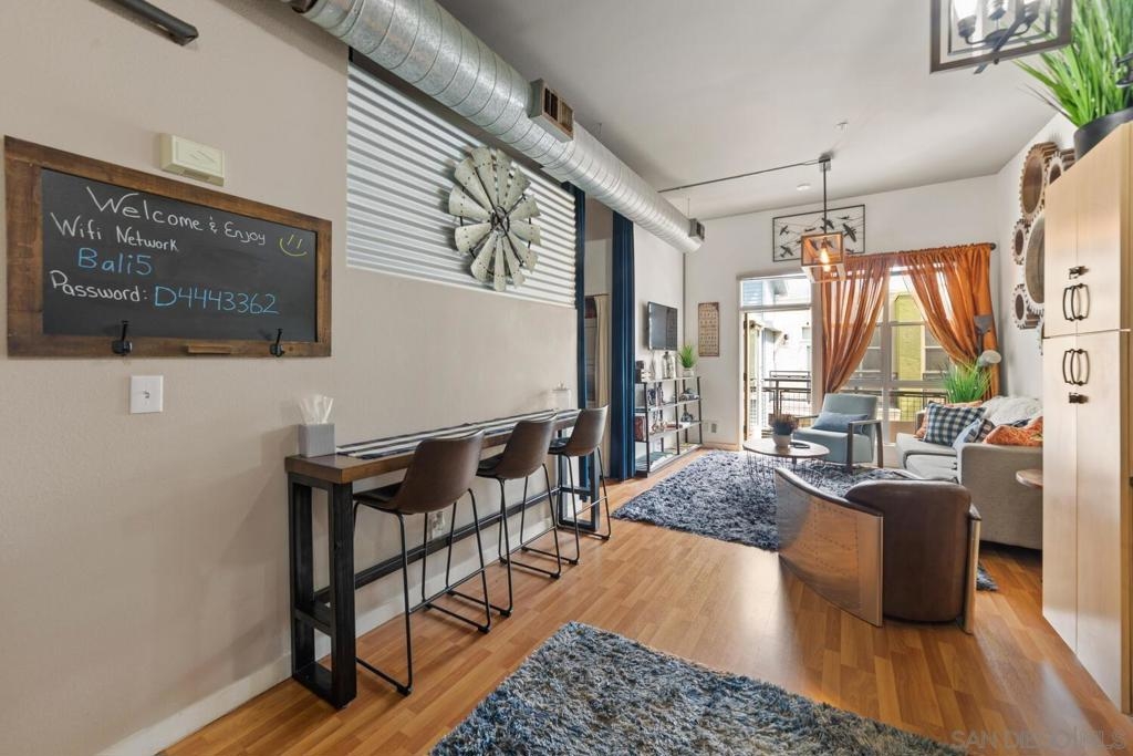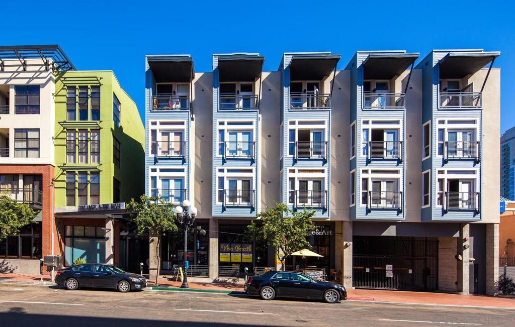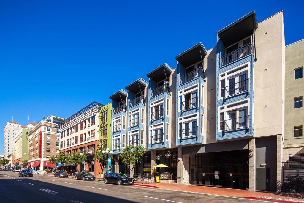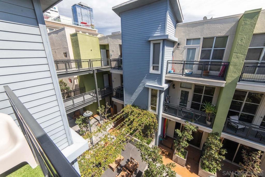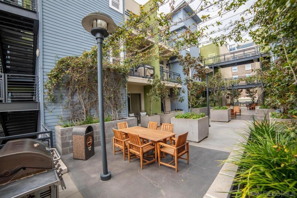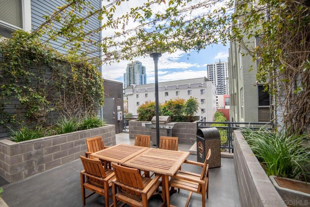 Terrific top floor 1 bedroom condo with southern exposure, quiet garden/patio view and can be purchased fully furnished. Complex includes exercise room, community patio, complete with bar-b-que. Located within blocks of all that is happening in San Diego including Petco Park, Convention Center, Little Italy, the Gaslamp district, Balboa Park, Seaport Village and more. Seller will provide credit towards one year of parking. Unit can be rented out, but must be 30 days or more.