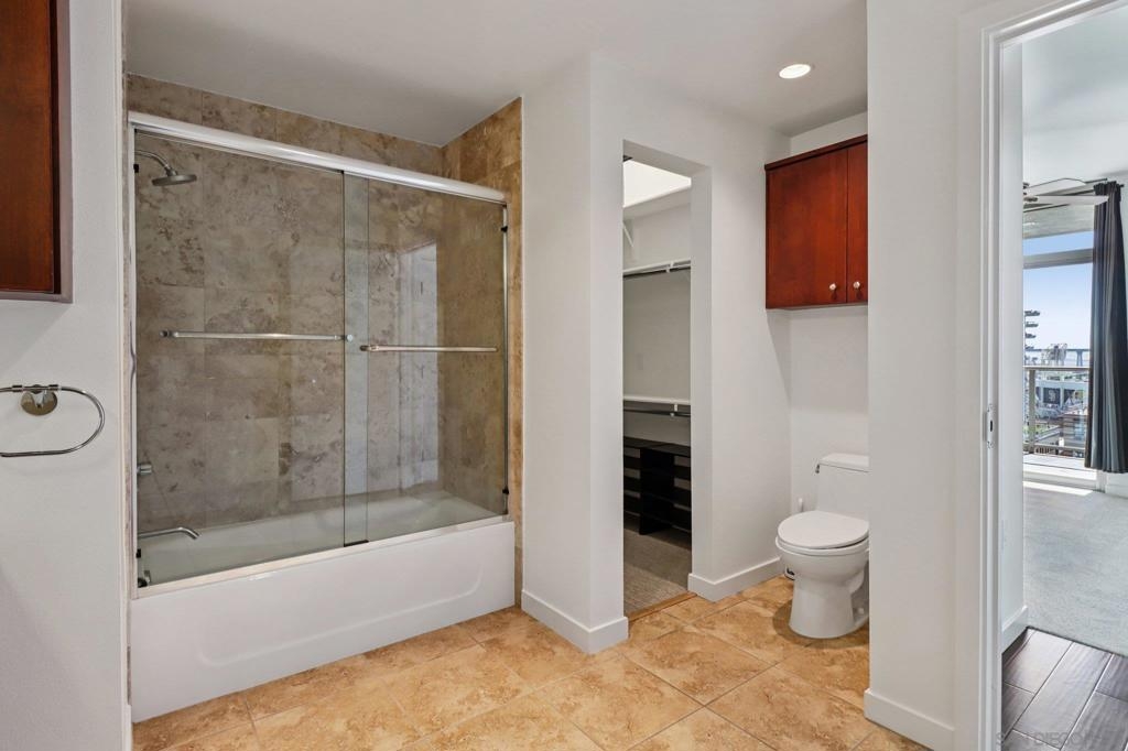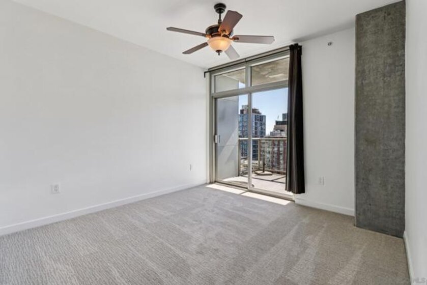 Experience luxury high-rise living in this spacious 16th-floor residence at The Mark, one of East Village’s sought-after communities. Perfectly located just steps from Petco Park yet positioned to avoid the noise and traffic, this home offers the ideal blend of excitement and serenity. The vibrant Gaslamp Quarter, scenic harbor, and charming Little Italy are all just minutes away, giving you endless options for dining, shopping, and entertainment. Inside, the open layout features a roomy living area with space for dining, home office or a den, plus access to a private balcony showcasing east, south, and westerly views—taking in the water, Coronado Bridge, Petco Park, and the sparkling city skyline. The kitchen is designed for both function and style, with stainless steel appliances, ample cabinet storage, generous counter space, and a convenient breakfast bar. The primary suite is a relaxing retreat where you can wake up to stunning views, step out onto your own private balcony, and unwind in a spacious bath with dual sinks. Additional highlights include an extra half bath, in-unit laundry, two side-by-side parking spaces, and a separate storage unit. The Mark offers unmatched amenities within its secure, gated community, including concierge service, 24-hour security, a newly updated saltwater pool and spa, BBQ and lounge areas, state-of-the-art fitness center, and conference room. VA approved, this residence combines modern comfort, breathtaking views, and resort-style living in the heart of Downtown San Diego.