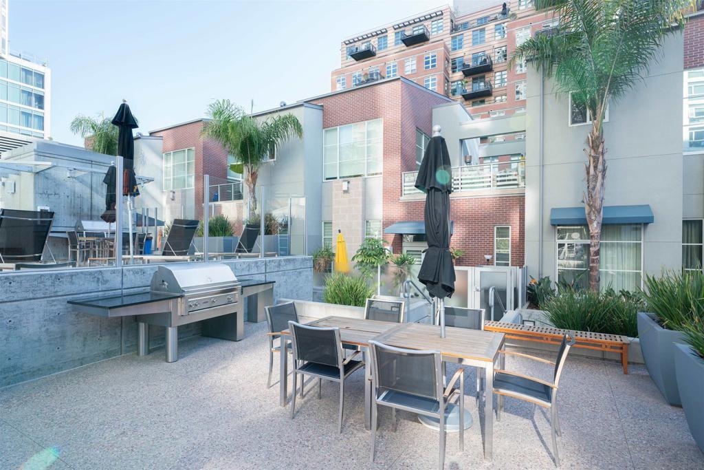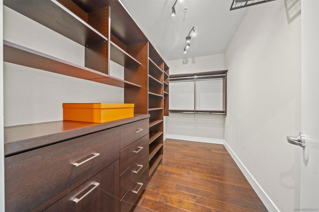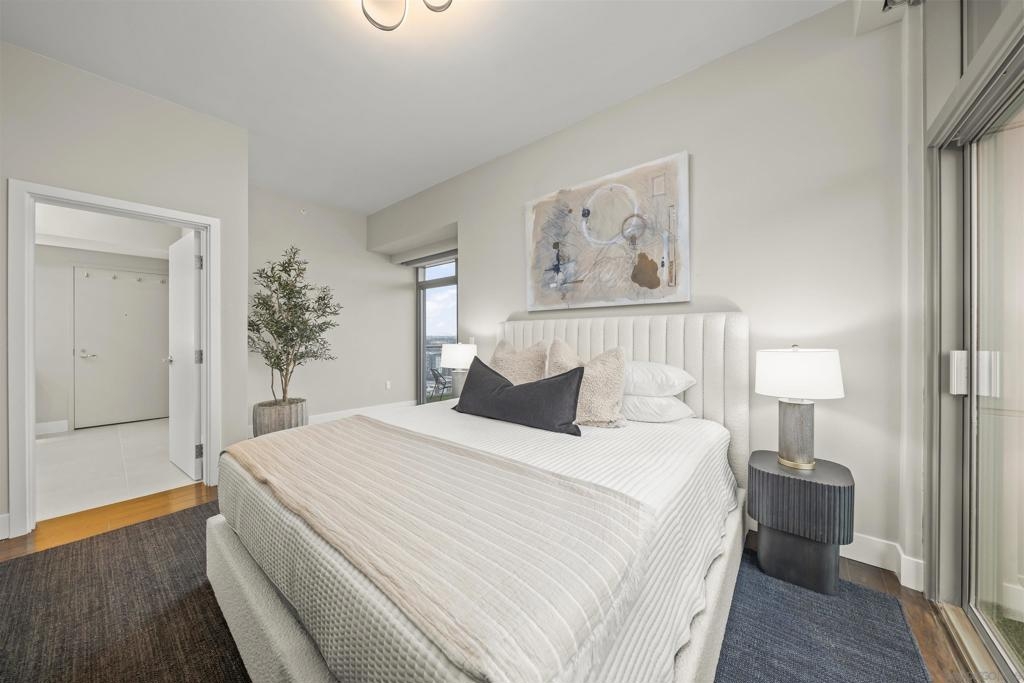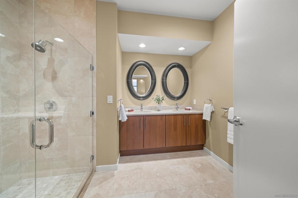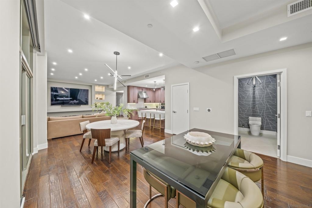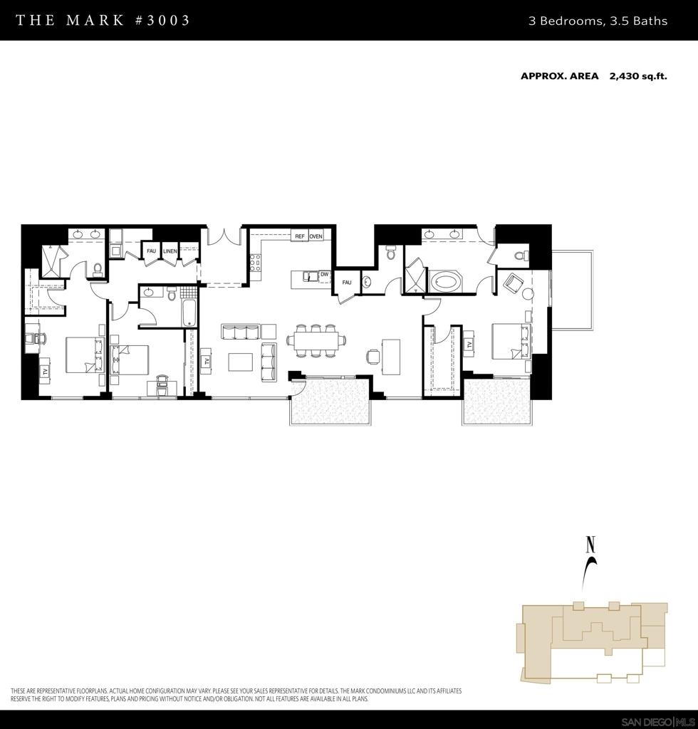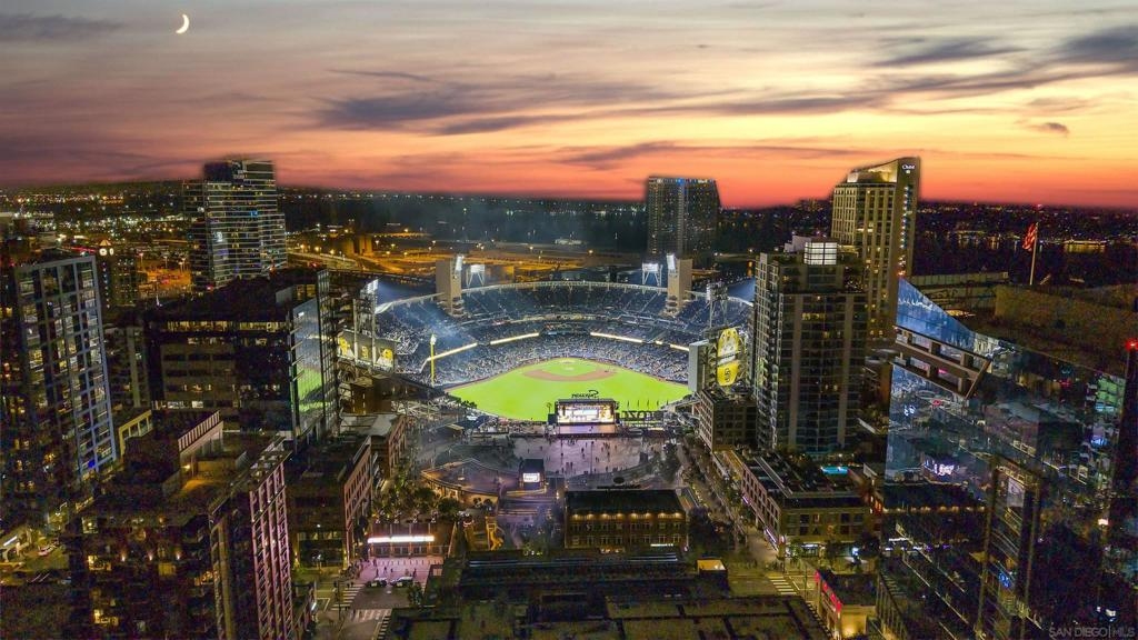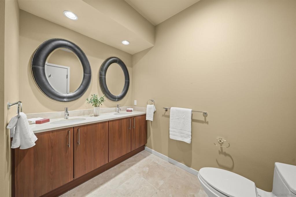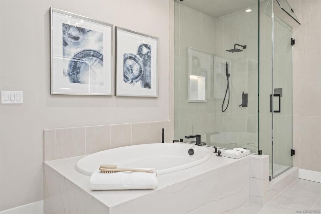 The Mark Residence 3003-Sky-High Sophistication with Iconic Views. Poised high above the city on the 30th floor, The Mark #3003 is a reimagined 3BR/3.5BA corner residence offering 2,430 sqft of elevated indoor-outdoor living. Enjoy three private terraces with sweeping views of the bay,ocean,Coronado & Petco Park. Recently transformed with a designer-led renovation, the home blends timeless elegance with modern luxury. The chef’s kitchen showcases all-new Thermador appliances,a built-in Miele espresso machine,wine fridge,custom cabinetry & matte quartz countertops by Cambria. The luminous backlit Calacatta Thunder quartz bar sets the tone for refined entertaining,while a 98" TV & 100" Aquafire Pro fireplace anchors the expansive great room. This residence offers 10' ceilings & floor-to-ceiling windows throughout. The primary suite features two walk-in closets, two balconies, a private entrance & a spa-like bath with steam shower, soaking tub, Toto washlet & LED mirror. Two en-suite guest rooms are privately located on the opposite wing, maximizing privacy. A former office was opened for a more spacious layout but can easily be restored. Additional highlights include three dedicated parking spaces with an EV charger & a private storage room. With only three residences on this floor, peace & exclusivity are assured. Residents enjoy 24-hr security, a saltwater pool/spa, state-of-the-art fitness center, conference room & a beautifully curated outdoor entertaining area with BBQs, a pizza oven & multiple lounge spaces. This is a rare & refined offering—luxury, privacy & lifestyle.