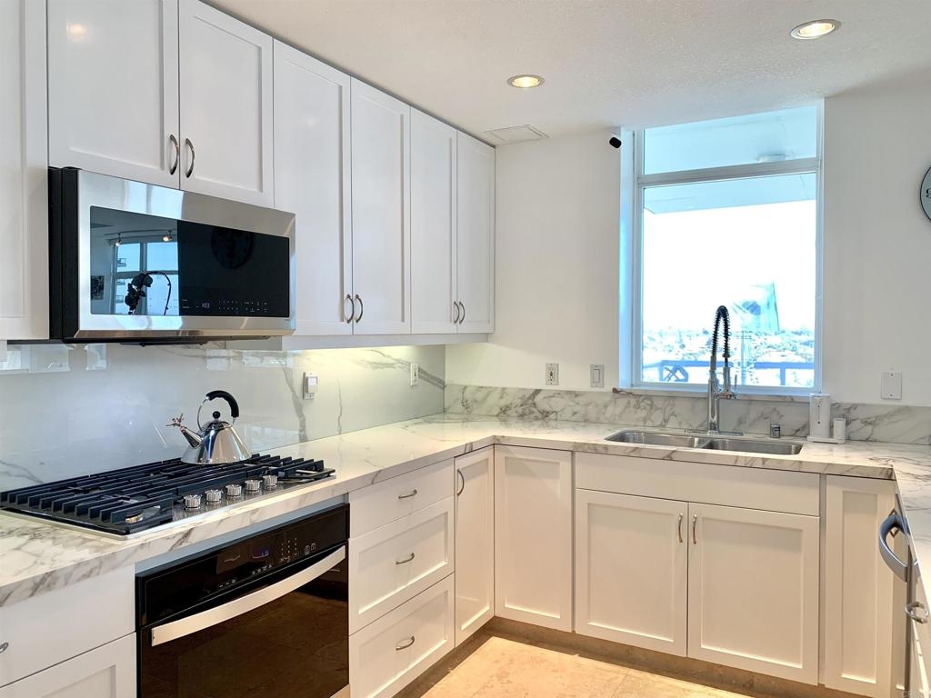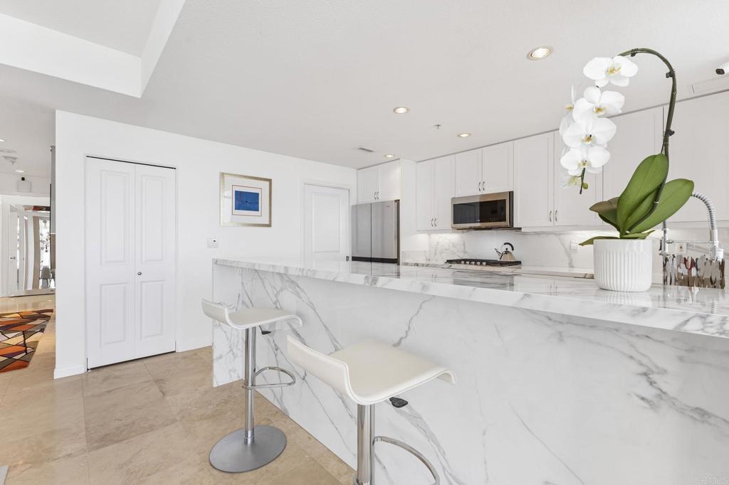 PRICE REDUCTION - FANTASTIC OPPORTUNITY! Experience the height of modern elegance in this impeccably designed 2Br 2Ba residence with den, offering the perfect blend of style and urban sophistication. Discovery at Cortez Hill is a contemporary full service luxury building offering residents comfort, convenience, and security. Expansive open-plan living areas flow seamlessly across honed travertine floors, illumilnated by statement lighting and spectacular views framed by floor to ceiling windows with automated roll-down shades and a beautiful gas fireplace. Entertain guests at the elegant bar or move to the private balcony with views of Balboa Park and the beautiful mountains to the east. Peek bay views to the west and south add to the ambiance. The chef’s kitchen is both beautiful and functional, featuring sleek Italian porcelain countertops, custom cabinetry, and top-tier stainless steel appliances; an entertainer’s dream that anchors the home’s refined aesthetic. The serene primary suite invites relaxation with blackout shades and drapes, for a restful night's sleep and a spa-inspired bath with dual marble vanity, soaking tub, walk-in shower and generous storage. The 2nd bedroom and bath provides comfort for family or guests while the versatile den provides the ideal setting for a home office, media lounge, or creative space. An in-unit laundry and walk-in pantry provide storage and convenience. The building features 24-hour concierge, a state of the art fitness center with separate weight room and cardio equipment, steam room, and sauna. The rooftop lap pool, spa, barbecues, fire-pit, and outdoor dining area are like living at a private resort. A bicycle room, business center, conference room, deeded storage and 2 secure side by side underground parking spaces round out the building amenities. This residence delivers an effortless lifestyle in one of the quietest downtown neighborhoods; placing the best of urban living, fine dining, and vibrant culture right at your doorstep.