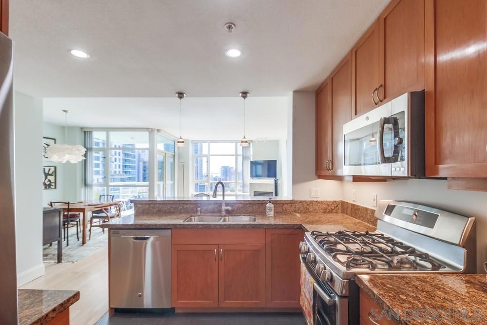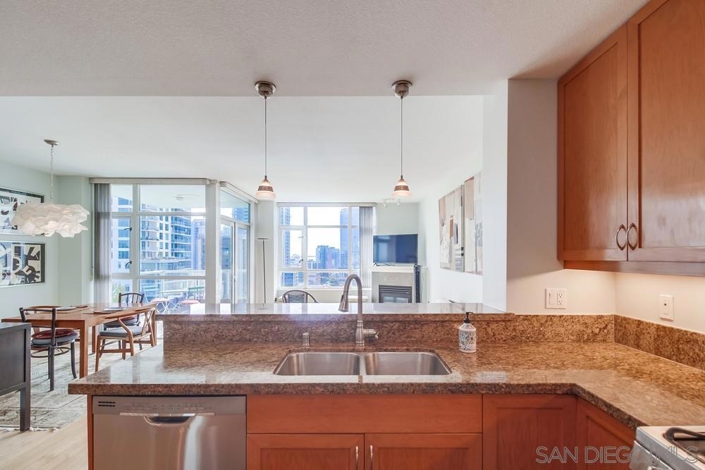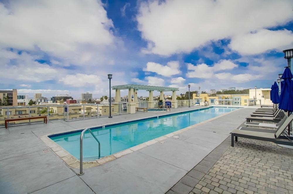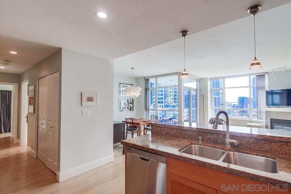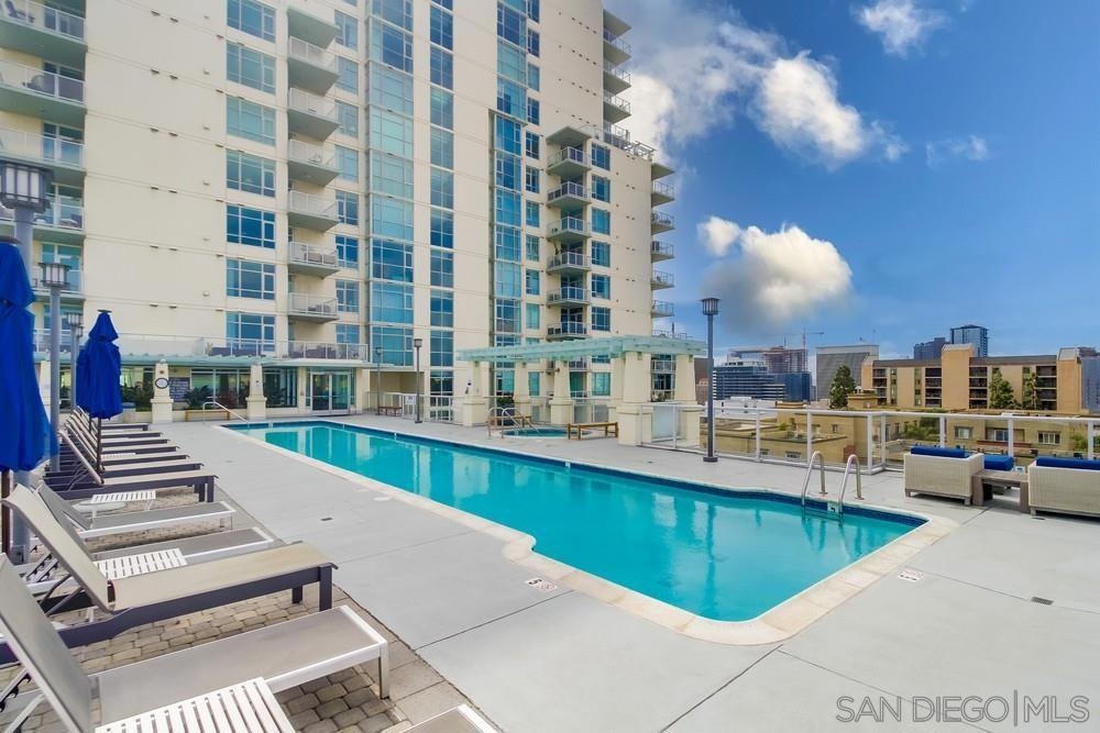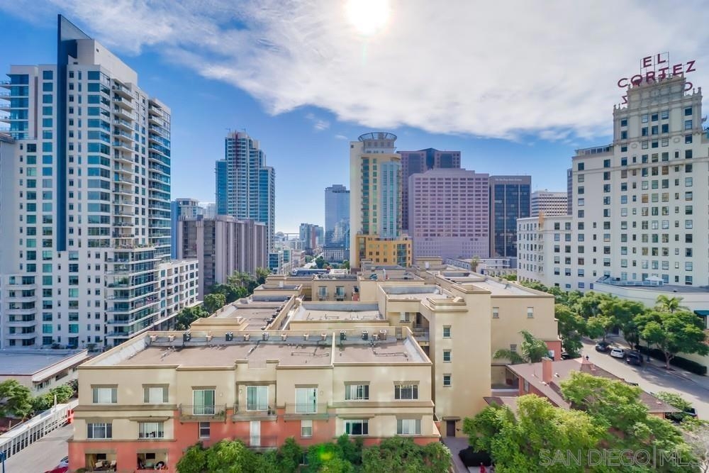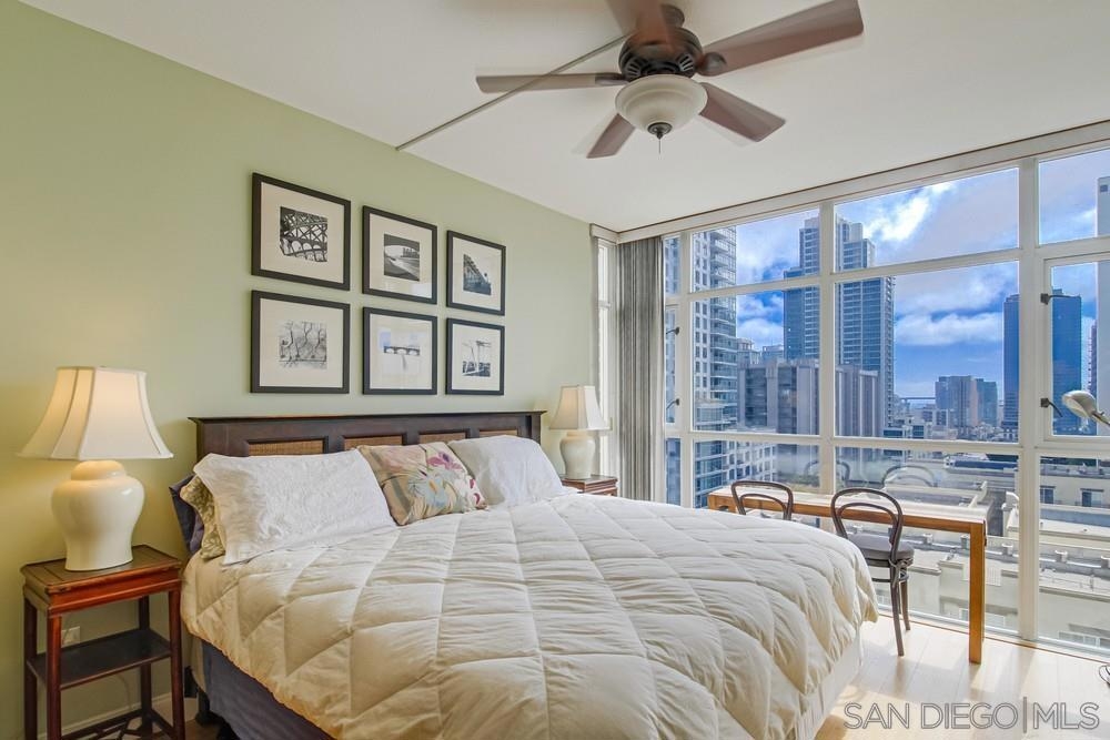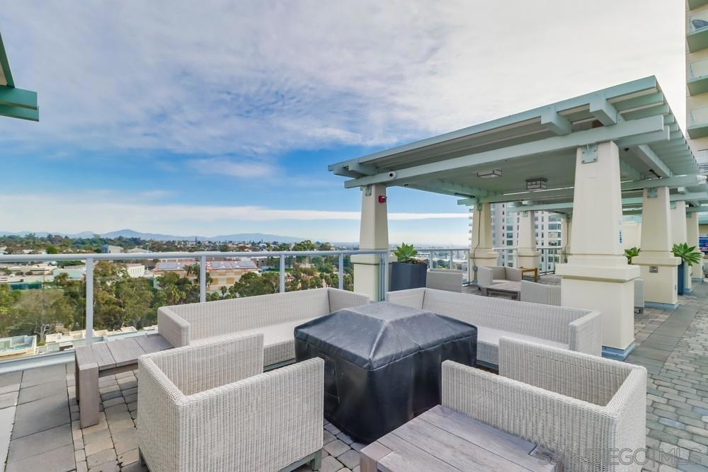 Welcome to Discovery at Cortez Hill, a premier high-rise residence located at 850 Beech Street in downtown San Diego. Spanning 1,133 sq ft, this spacious 2-bedroom, 2-bathroom condo offers an exceptional living experience with panoramic views of the mountains to the east, the Coronado Bridge, downtown skyline, and the iconic El Cortez. Step inside to find an abundance of natural light accented by elegant bamboo flooring throughout, creating a warm and inviting ambiance. The open-concept kitchen is perfect for entertaining, featuring stainless steel appliances, a large granite countertop with bar seating, and ample storage space. The primary suite offers a peaceful retreat with a walk-in closet, and spa like en-suite bathroom. While the in-unit washer and dryer add everyday convenience. This home also includes two dedicated side by side parking spaces #259/ #101 and a private storage room H#51, ensuring plenty of room for all your belongings. The Discovery building provides a wealth of upscale amenities designed for comfort and convenience, including a 24-hour concierge, fitness center, a sauna and steam room, gas BBQs, fire pits, a social lounge, business center, EV charging station, and a stunning rooftop pool and spa with breathtaking city views. This prime location is ideally situated within walking distance of the vibrant Gaslamp Quarter, charming Little Italy, scenic Balboa Park, convenient trolley stations, and the excitement of Petco Park. Whether you're looking for fine dining, entertainment, or cultural attractions, everything is just moments away.