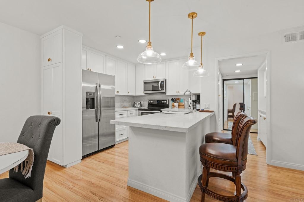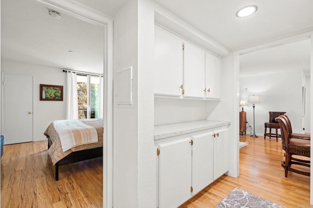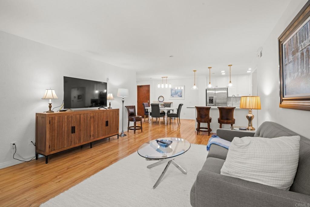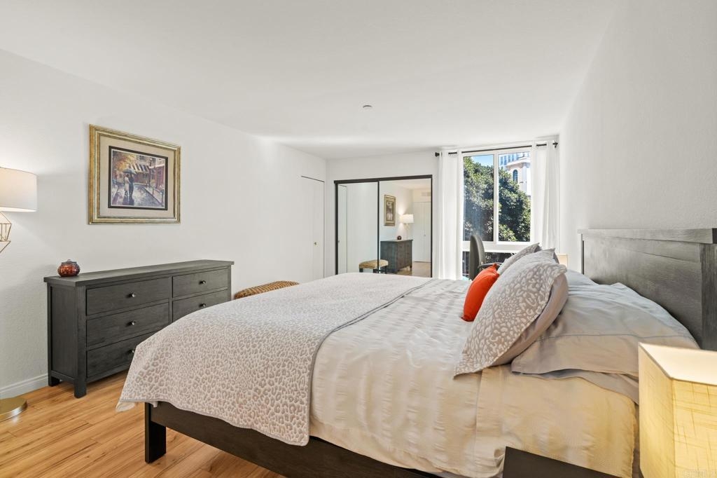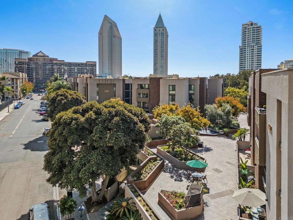 **Selling Furnished!!** Polished and sophisticated downtown San Diego living awaits. Welcome to 850 State Street, Unit 220—a beautifully remodeled 2-bedroom, 2-bathroom unit located on the second floor in the luxurious Marina Park District. This furnished residence has been thoughtfully renovated with quartz countertops, a modern backsplash, new appliances, and a custom wine bar, perfect for entertaining. The highly sought-after split-bedroom layout is bright and open, creating a spacious feel. The oversized private balcony provides a serene view of the city skyline. There’s an eat-in kitchen as well as a separate dining room. Ample storage and the separation of bedrooms make this unit feel like the perfect home. Off the balcony, you will find fantastic city views, including the Manchester Grand Hyatt and a peaceful courtyard. Condo purchase includes two underground gated parking spaces. This sophisticated urban retreat is move-in ready and waiting for you! As a bonus, the seller is offering the property furnished.Marina Park offers numerous amenities, including: - 36 off-street, covered parking spaces for guests- 24-hour electronic surveillance - Two four-story buildings - Two heated swimming pools - Two gazebo-covered heated spa pools - Two exercise/fitness rooms - Two saunas with showers- A multi-purpose recreation room with kitchen and big-screen TV, - Library/reading room, - Five fountains and numerous gardens, - Five elevators (two in each residential building, one in the lobby), - Two remote-controlled gated car entry/exits to the garage, - An above-street-level perimeter pedestrian walkway spanning two city blocks Come see this one today—you won’t be disappointed. FHA and VA approved.