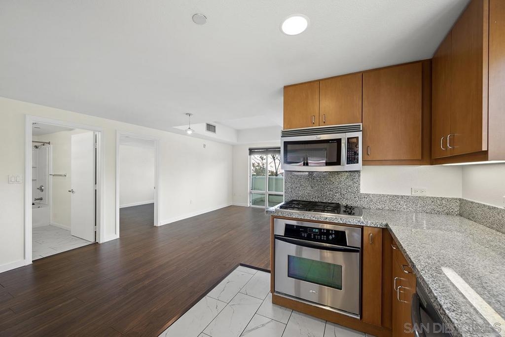 Downtown East Village spacious condo just blocks away from Petco Park, Gaslamp, Seaport Village and Little Italy. This 1 bedroom corner unit offers a large wrap-around balcony, floor to ceiling windows in living room, laminate and tile floors, granite counters in kitchen, maple cabinetry, recessed lighting & stainless steel appliances. Complex amenities include rooftop patio on the 7th floor and fitness center. 1 parking space, 1 storage unit, pet friendly! VA approved and Low HOA! Nexus is centrally located in the heart of East Village downtown San Diego. East Village has easy access to all of the best downtown has to offer such as Petco Park, Gaslamp Quarter, San Diego Bay, Marina, shopping, entertainment and dining. Nexus offers its residents more than 20 unique floor plans, Clubhouse, 7th floor common terrace, Fitness center, Underground parking, and lower HOA's. Complex Features: ,,, Equipment: Dryer,Fire Sprinklers,Garage Door Opener, Washer Sewer: Sewer Available Topography: LL