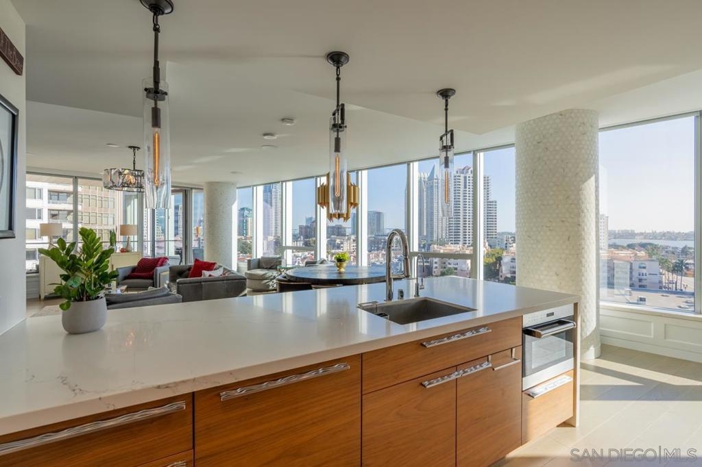 Pacific Gate is the most luxurious super prime building in San Diego. This unit has been meticulously upgraded and remodeled with custom audio, lighting, built-ins, closets, masonry stone work and much. Over 100k in post close upgrades to make this a one of a kind 04 floor plan. Enjoy the South West orientation with abundance of light, breathtaking sunsets and Bay Views. This unit wont disappoint, enjoy a true turn key unit. Pacific Gate has a guest suite unit available to owners with reservations and a Luxurious Yacht to enjoy as part of the amenities. Dont forget the fleet of cars owners can use while in San Diego. Enjoy 24/7 concierge services while living at Pacific Gate and the amenities of a super prime building. Equipment: Dryer Sewer: Sewer Available Topography: LL