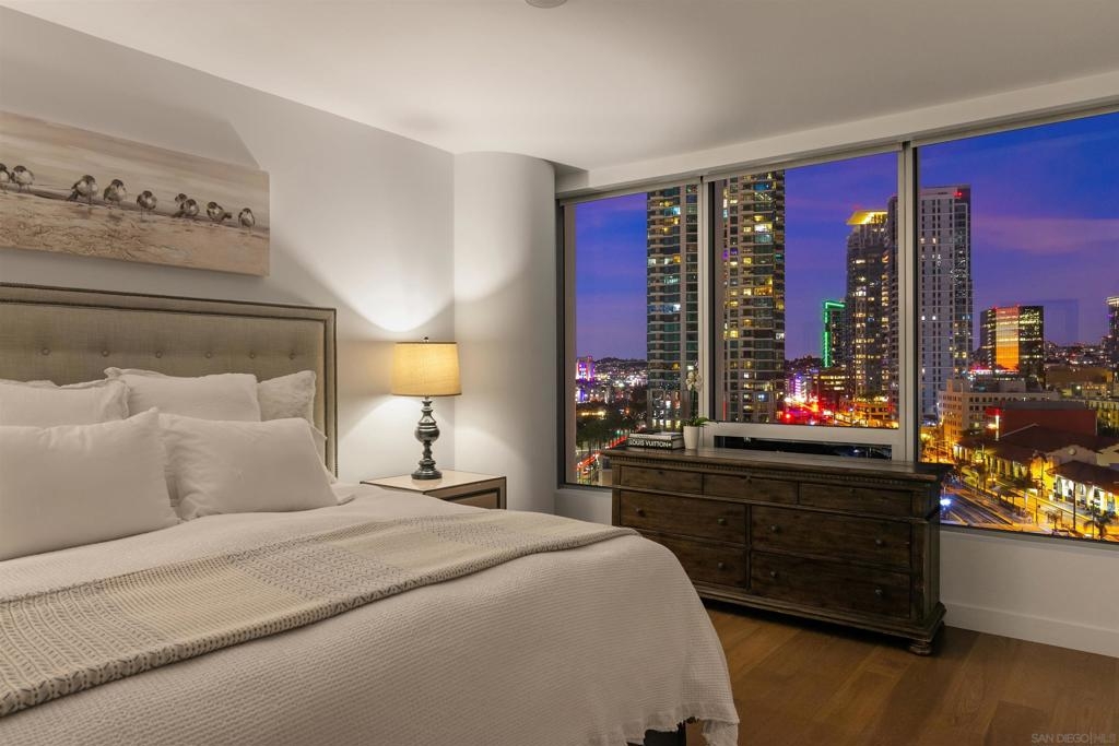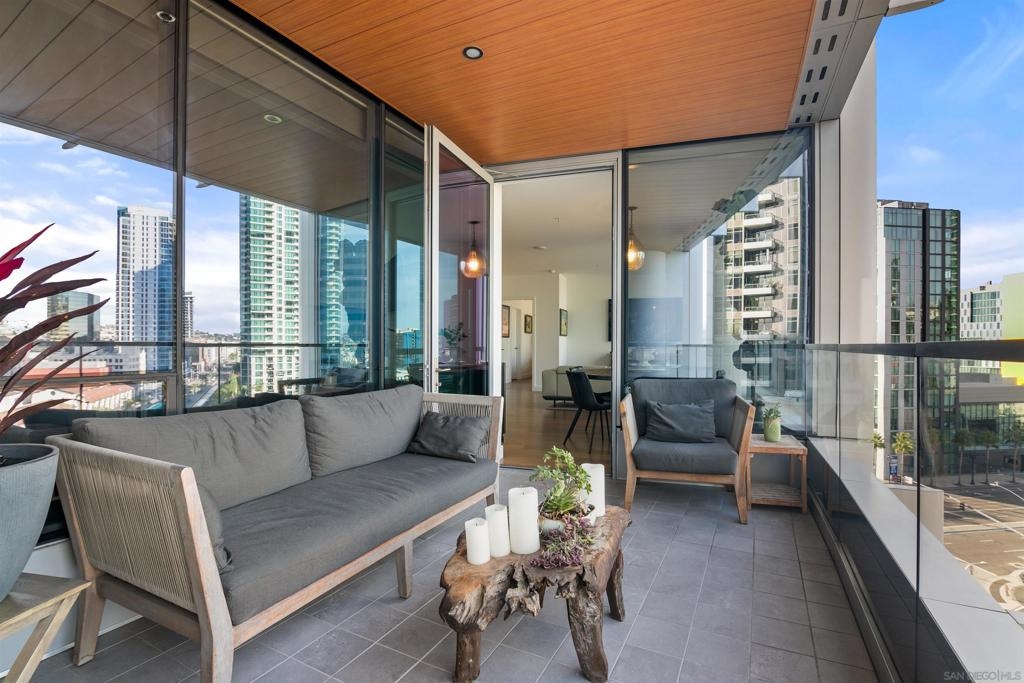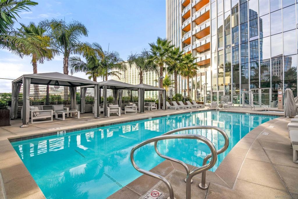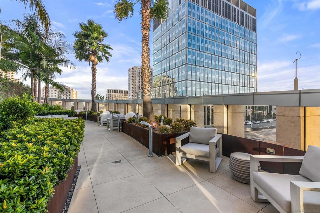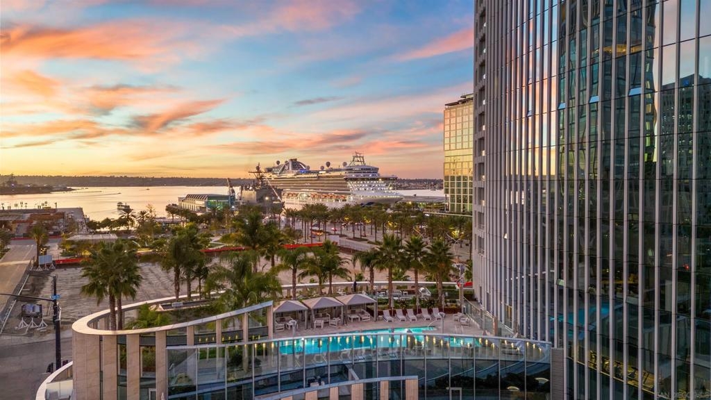 Welcome to Pacific Gate, where luxury living is redefined by modern elegance, contemporary design, and exceptional concierge services. Perched on the 10th floor, this unit features expansive floor-to-ceiling windows and a spacious covered terrace with unobstructed views of the downtown skyline. High-end finishes abound, including hardwood flooring, custom storage closets, fully automated shades, and touch-screen lighting. The gourmet kitchen is a culinary masterpiece, equipped with state-of-the-art appliances, push-button cabinetry, sleek stone countertops, and a Carrara marble backsplash. The primary suite offers stunning views, a customized walk-in closet, and an en-suite bathroom with heated floors, a soaking tub, a separate walk-in shower, and a backlit mirror with a built-in TV. Residents enjoy unparalleled amenities, including a private yacht share, a luxury fleet of cars, chef’s concierge service, community lounge, theater/screening room, resort-style pool, spa with cabanas, BBQ deck, pet retreat, bike storage, and a state-of-the-art fitness center, steam room, sauna, and a private guest suite. This unit uniquely offers two storage units, whereas most units come with just one, making it a highly sought-after feature. Discover urban living in the San Diego Downtown Waterfront District, a vibrant area brimming with coastal charm. Ideally situated above the renowned Animae restaurant at Pacific Gate, this building is just a short stroll from Little Italy. At its heart are the beautifully revitalized Seaport Village and The Rady Symphony Shell at Jacobs Park. Enjoy the convenience of a quick ferry ride to Coronado Island, along with easy access to the Gaslamp Quarter, the airport, and Balboa Park's museums, including the San Diego Zoo. The upcoming RaDD, San Diego's newest office, lab, and retail district, is set on the waterfront across from the USS Midway Museum. This $1.5 billion Life Sciences complex and park will further enhance the area’s appeal. Spanning more than eight acres, the Research and Development District will transform downtown San Diego with an iconic life science district featuring best-in-class retail, outdoor dining, open green spaces, event spaces, and convenient transit access.