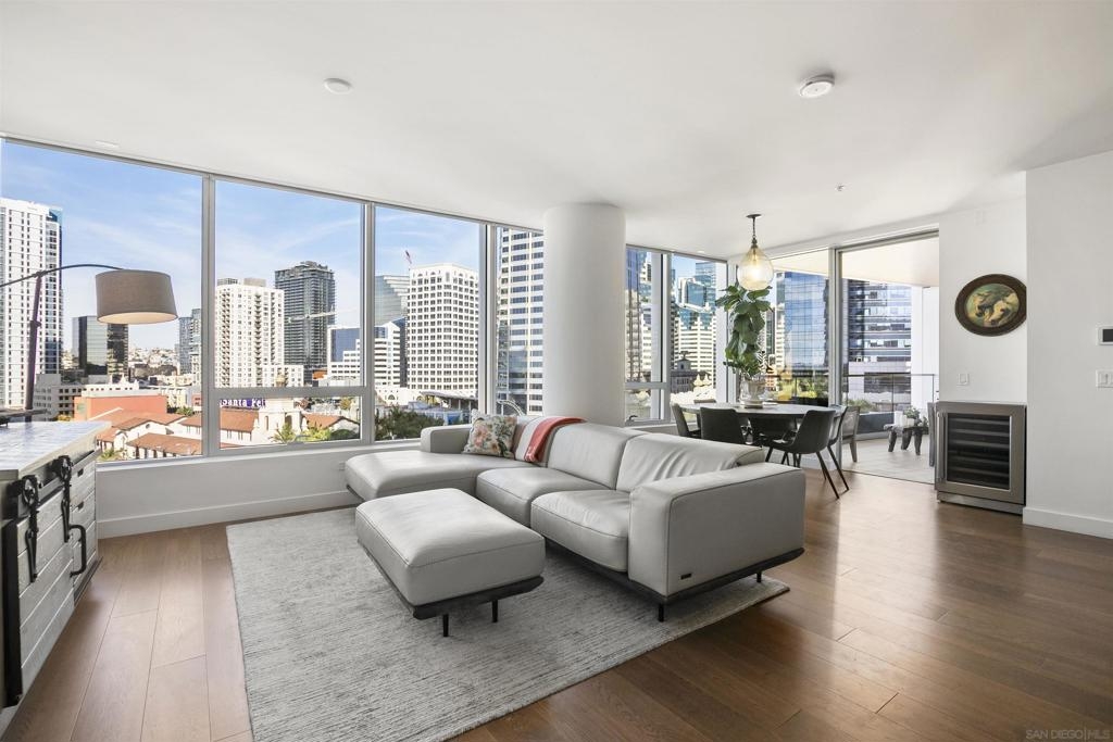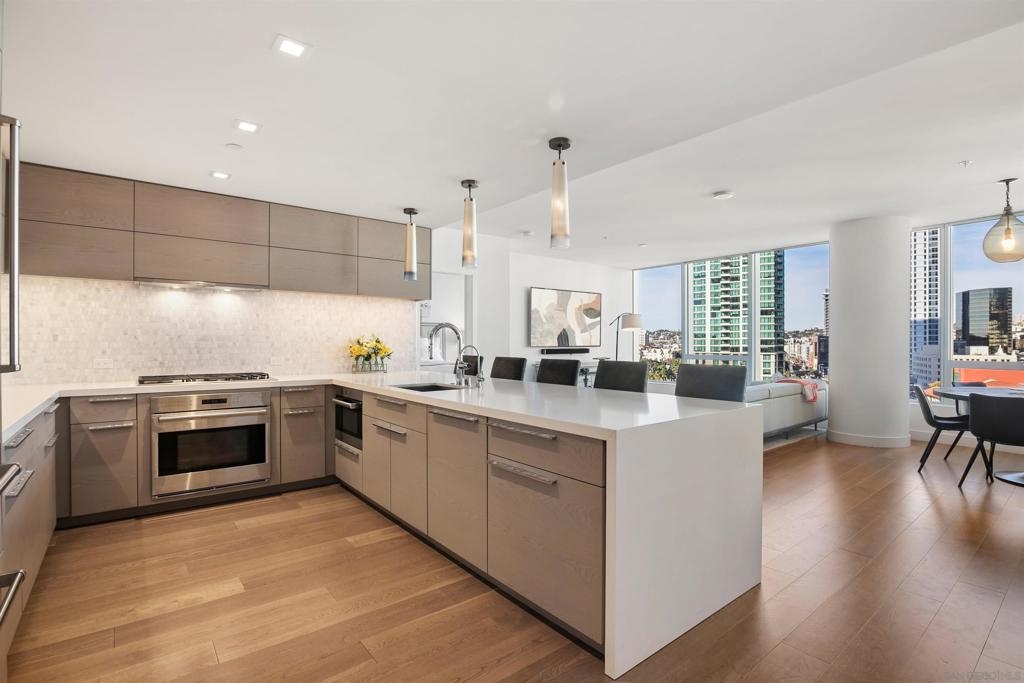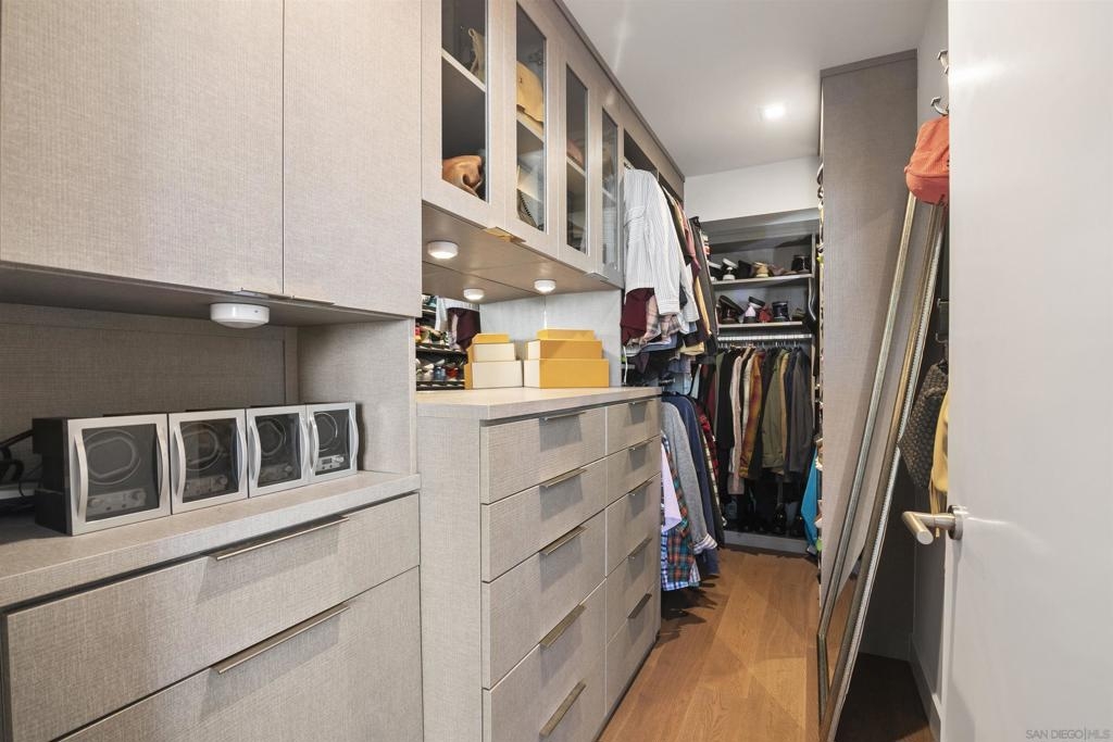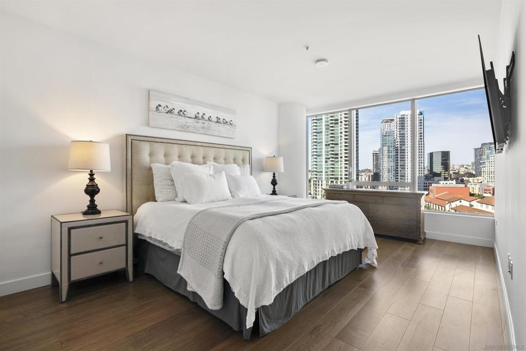 Welcome to Pacific Gate, where luxury living is redefined by modern elegance, contemporary design, and exceptional concierge services. Perched on the 10th floor, this unit features expansive floor-to-ceiling windows and a spacious covered terrace with unobstructed views of the downtown skyline. High-end finishes abound, including hardwood flooring, custom storage closets, fully automated shades, and touch-screen lighting. The gourmet kitchen is a culinary masterpiece, equipped with state-of-the-art appliances, push-button cabinetry, sleek stone countertops, and a Carrara marble backsplash. The primary suite offers stunning views, a customized walk-in closet, and an en-suite bathroom with heated floors, a soaking tub, a separate walk-in shower, and a backlit mirror with a built-in TV. Residents enjoy unparalleled amenities, including a private yacht share, a luxury fleet of cars, chef’s concierge service, community lounge, theater/screening room, resort-style pool, spa with cabanas, BBQ deck, pet retreat, bike storage, and a state-of-the-art fitness center, steam room, sauna, and a private guest suite. This unit uniquely offers two storage units, whereas most units come with just one, making it a highly sought-after feature. Discover urban living in the San Diego Downtown Waterfront District, a vibrant area brimming with coastal charm. Ideally situated above the renowned Animae restaurant at Pacific Gate, this building is just a short stroll from Little Italy. At its heart are the beautifully revitalized Seaport Village and The Rady Symphony Shell at Jacobs Park. Enjoy the convenience of a quick ferry ride to Coronado Island, along with easy access to the Gaslamp Quarter, the airport, and Balboa Park's museums, including the San Diego Zoo. The upcoming RaDD, San Diego's newest office, lab, and retail district, is set on the waterfront across from the USS Midway Museum. This $1.5 billion Life Sciences complex and park will further enhance the area’s appeal. Spanning more than eight acres, the Research and Development District will transform downtown San Diego with an iconic life science district featuring best-in-class retail, outdoor dining, open green spaces, event spaces, and convenient transit access.