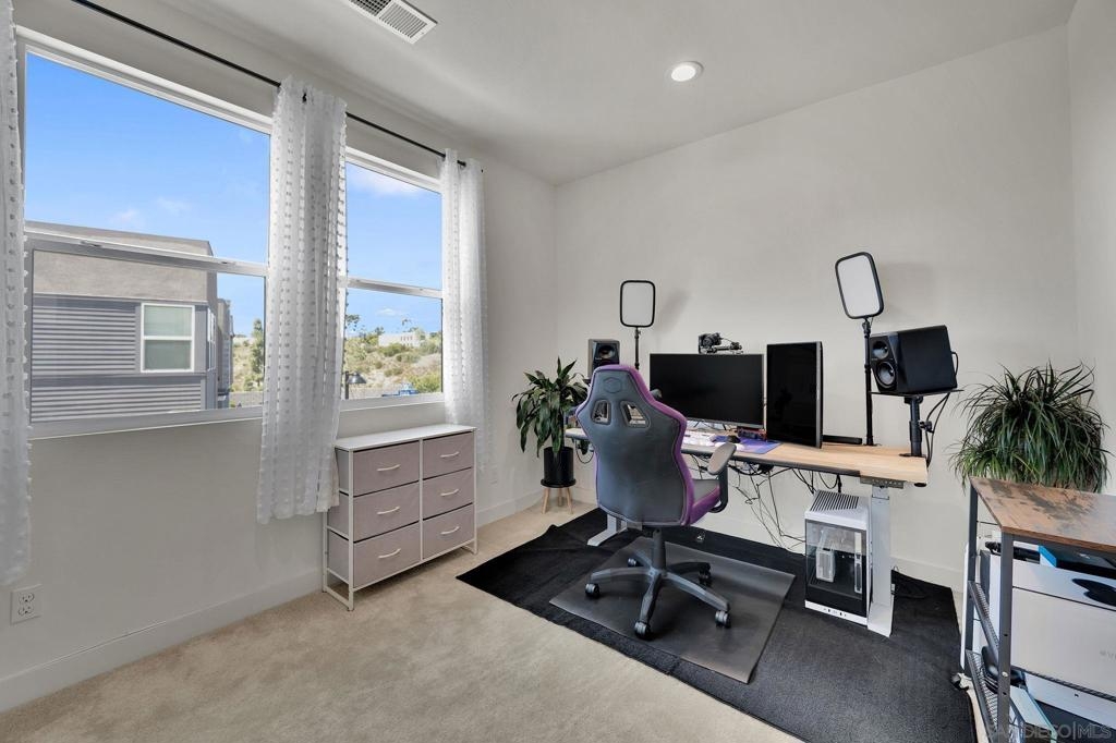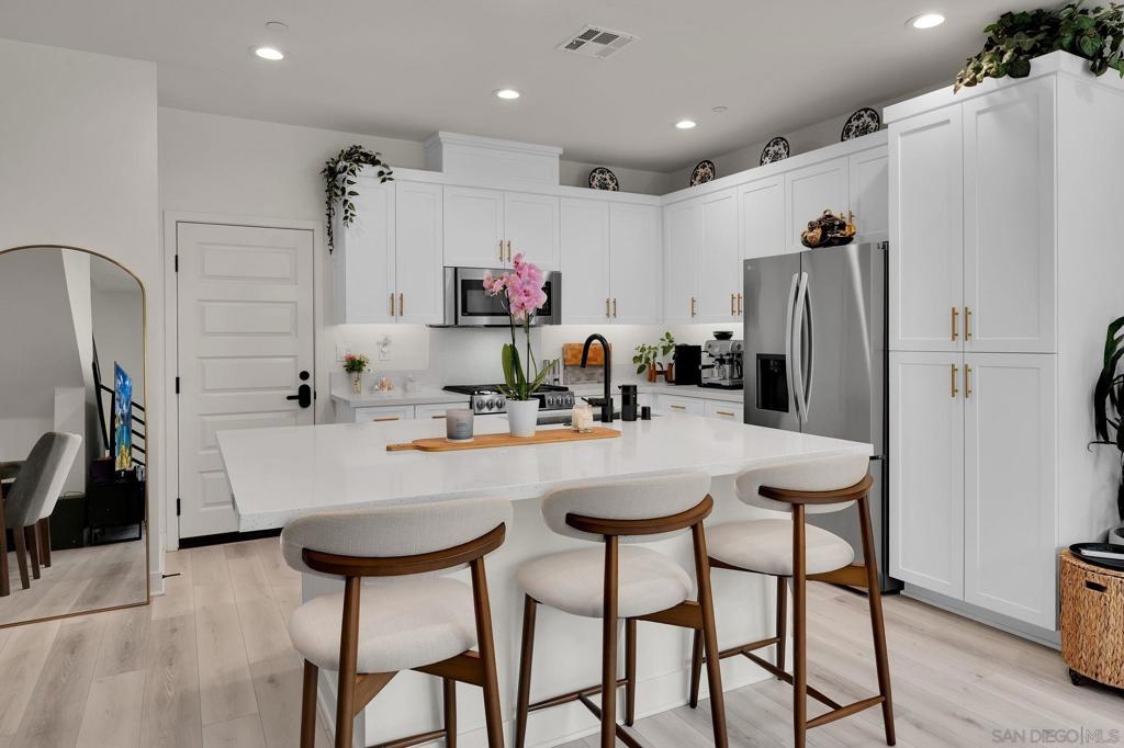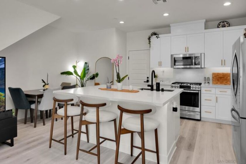 Completely upgraded ‘smart' home in extremely desirable '3 Roots' of Sorrento Mesa! Come check out all this unique 'state-of-the-art' community has to offer. Situated in an ideal location w/ close proximity to the I-15 & 805 freeways, highly sought after & prestigious 3 Roots offers you newer construction & a modern lifestyle w/ resort-style amenities including sparkling leisure & ‘lap' Pools & Spa w/ poolside cabanas, a modern fitness center w/ group classes & sauna, outdoor sports court, a community park w/ play structures for the kids, walking & jogging trails on-site & the relaxing clubhouse lounge & BBQ's for socializing or reserving for your own private events. Built in 2023, this 3BR floor-plan features all modern upgrades & is SOLAR powered w/ its' own 3.5 KW solar-system OWNED outright, saving you thousands on energy costs every year! This spacious, open floor-plan townhome sits on a desirable, quiet hillside location within the community. Smart home features integrate seamlessly into a sleek, high-tech interior, w/ the lighting, blinds, locks, appliances & motion-sensor lighting throughout all controlled from your ‘app'. Additional features include biometric bedroom door locks, an EV-ready garage, tankless water heater, 3 overhead storage racks in the attached garage & the 10 solar panels. Enjoy fresher indoor air with a HEPA filtration system & 'whole house' water filtration system too. The open living space between the living/ dining/ kitchen areas allows the home a ‘great’ room feel & the kitchen boast a large kitchen island w/ ‘bar' stools creating an environment ideal for entertaining. Other features include all stainless-steel appliances & gas range/ oven, white ’shaker' cabinetry w/ quartz stone countertops, recessed lighting, all new hardware, sink & fixtures and much more! Light & bright throughout, the upgraded Low-E windows allow for lots of natural light inside the interior. Other features include LVP luxury vinyl plank flooring, a large primary suite w/ 'walk-in' closet & ‘barn’ style door leading to the primary bathroom w/ dual sinks in the primary bath & full-size upstairs laundry room for convenience. The home sits in a prime location within the complex too & has NO neighbors to the front as it faces East towards the private hillside. Come experience unmatched convenience w/ quick access to the world famous La Jolla Shores & Del Mar City beaches, UCSD, Westfield UTC Mall, the San Diego Tech Hub (also known as the Sorrento Valley Tech Corridor), nearby tons of upscale dining, shopping & SO much more! Modern, smart & sustainable; don’t miss out on all 3 Roots offers you before making your decision where to buy!