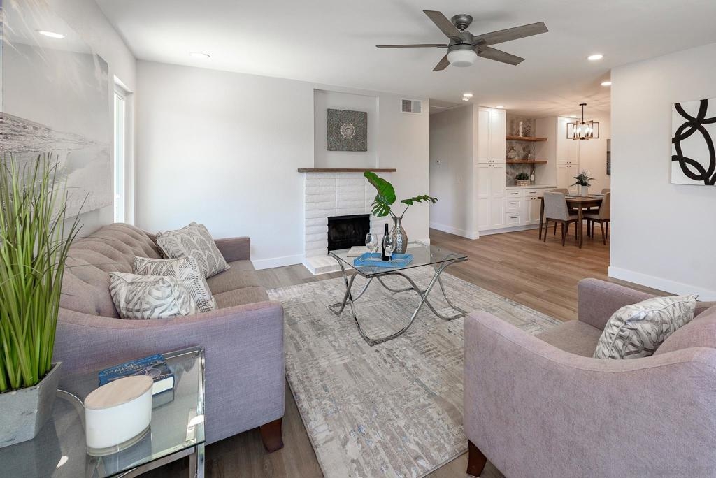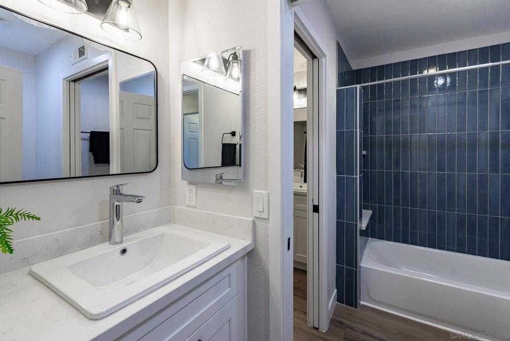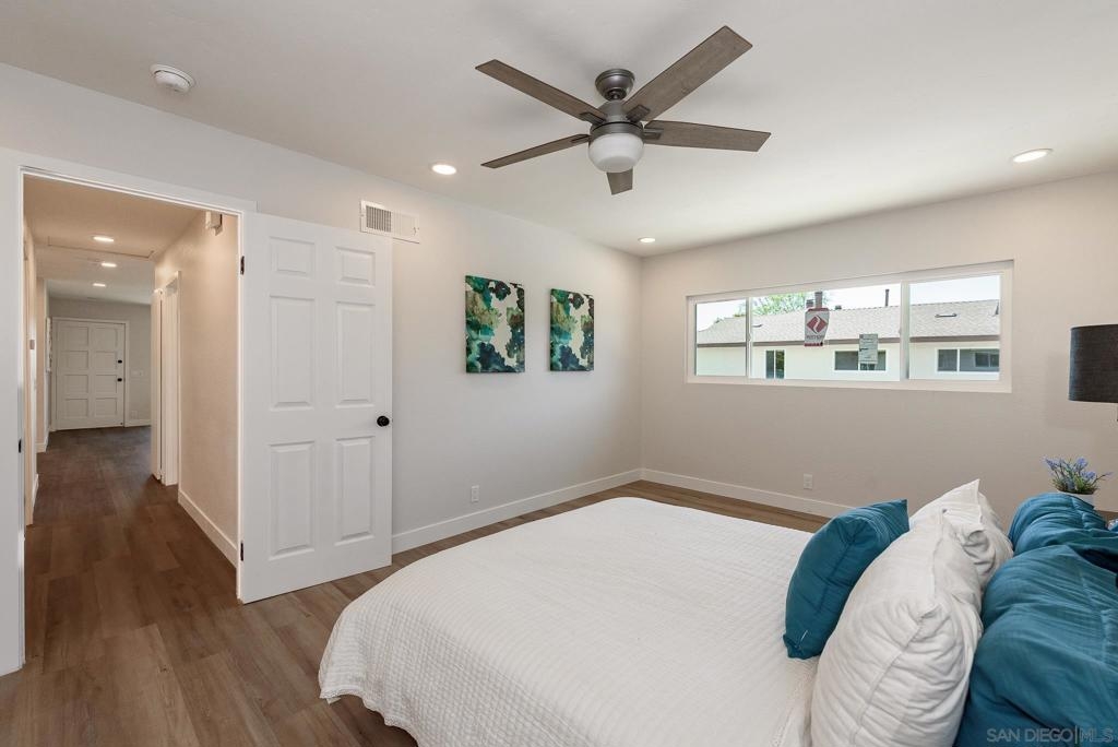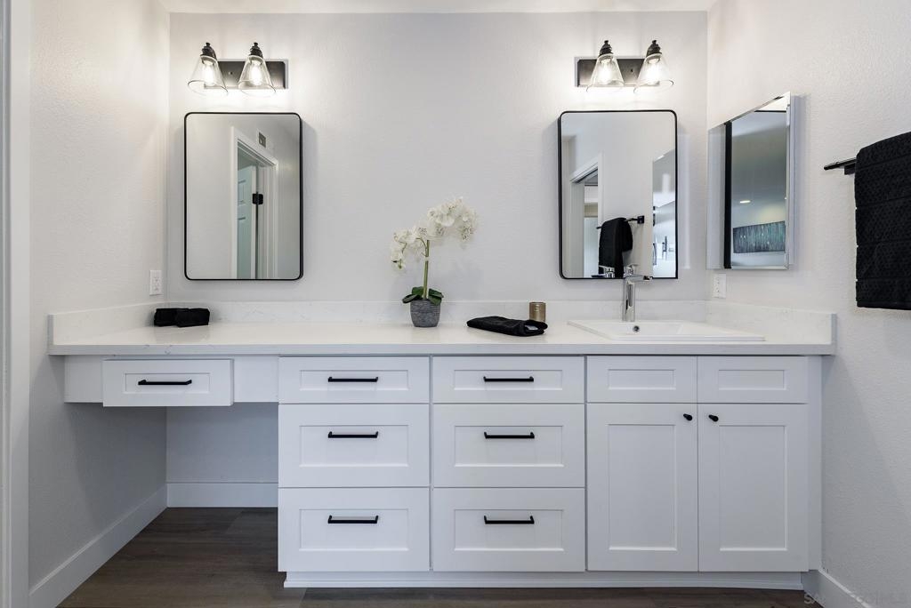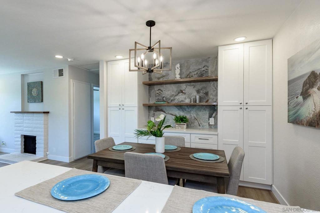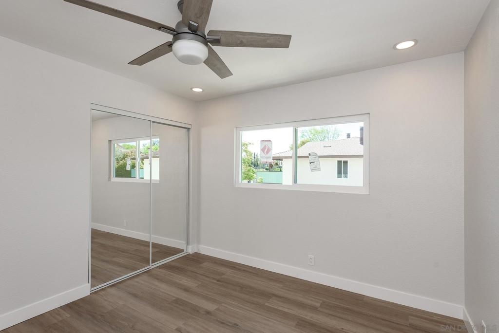 HUGE Price reduction! 2 Bd/1.5BA Beautifully reimagined interior remodel reflects the modern aesthetics of the moment. Optimally situated to capture southern/western exposure, this quiet upper unit single story home captures sunlight all day long through brand new energy efficient windows (warranty transfers to new owner). The dust is still settling from the recent remodel, which includes NEW: LVP flooring, Shaker cabinets, quartz counters, in-ceiling lights and ceiling fan, baseboards and molding, doors, bathroom. See SUPP: Woodworking craftsmanship on display under the peninsula counter and custom stained shelving. Stainless steel appliances. In-unit stacked laundry closet. New epoxy garage floors. Centrally located near HOA pool. Complex has many mature trees offering cool breezes and beautiful landscaping. Walk to Mt Carmel High, shops, restaurants and more. Sited nicely in a quiet part of the complex facing Caminito Cuadro, not a busy street or freeway.