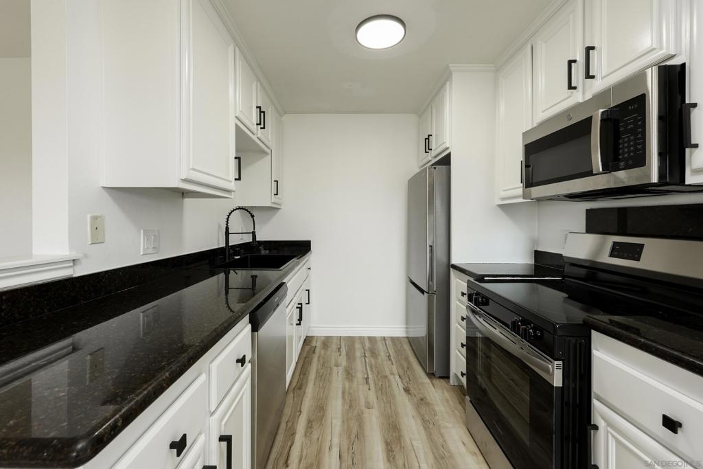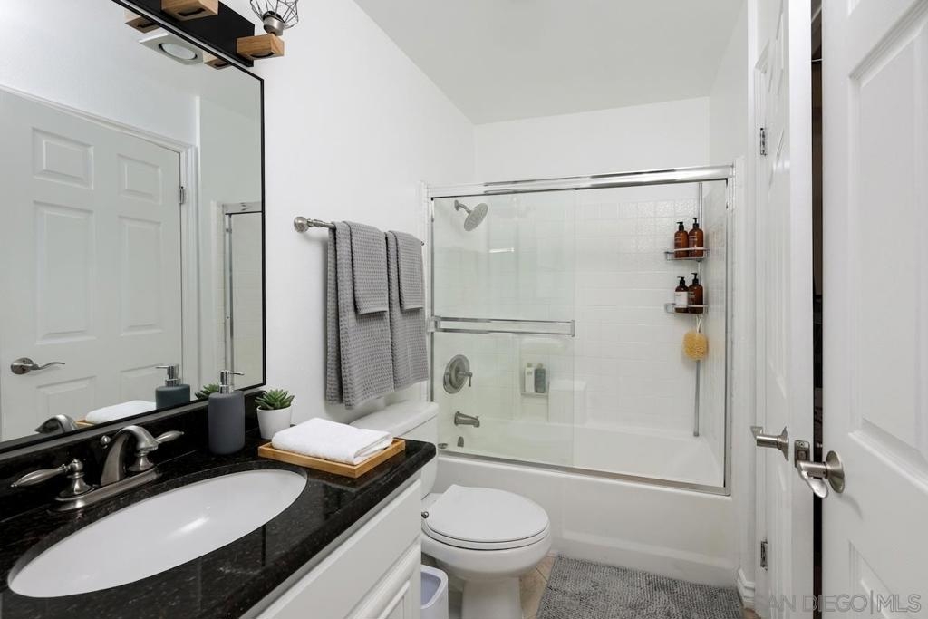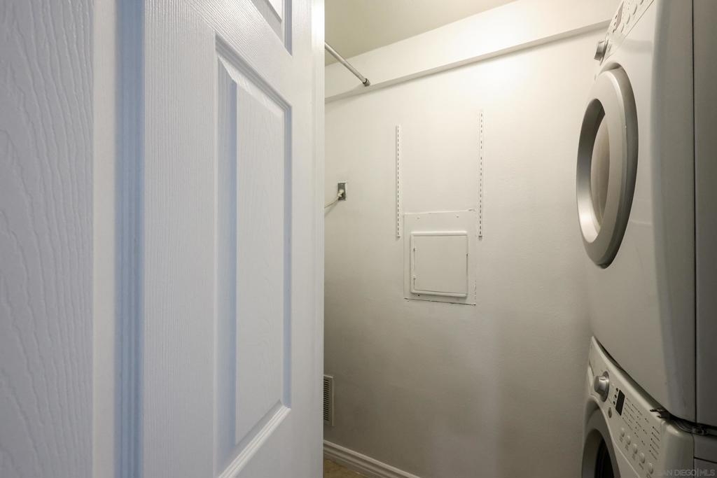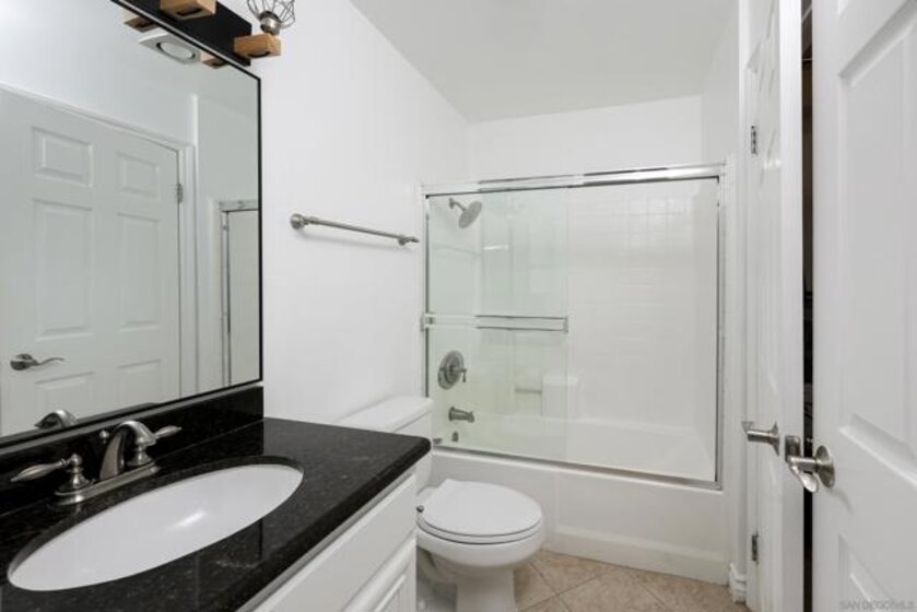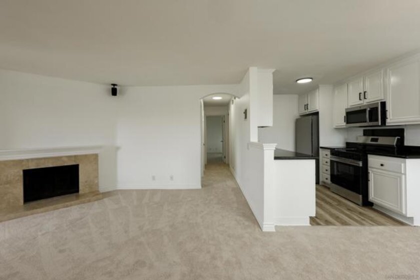 Experience the perfect blend of comfort and style in this beautifully refreshed top floor, end unit condo nestled in the highly sought-after Scripps Mesa community. Designed for effortless everyday living, the spacious 2 bedroom, 2 bathroom layout offers a bright and inviting atmosphere from the moment you arrive. Step inside to discover a freshly painted interior where brand new carpet flows seamlessly through the open living and dining spaces right into the peaceful bedrooms. Natural light pours in through sliding glass doors, highlighting a cozy fireplace that serves as the perfect centerpiece for relaxing evenings at home. The modernized kitchen inspires culinary creativity with striking white cabinets, sleek dark countertops, and a suite of upgrades including a brand new deep-basin sink, range, and refrigerator. Beyond the beautiful finishes, this residence is incredibly practical, featuring an in-unit stacked washer and dryer and a convenient storage closet situated just outside your screened front door. Two assigned outdoor parking spaces located right outside the unit make coming and going a breeze. Living here puts the unparalleled Scripps Ranch lifestyle right at your fingertips. You are just moments from Lake Miramar's scenic trails, community parks, and the Scripps Ranch Marketplace for convenient runs to Trader Joe's. With quick I-15 access simplifying your commute, this turnkey sanctuary offers an elevated living experience completely ready for you to enjoy.
